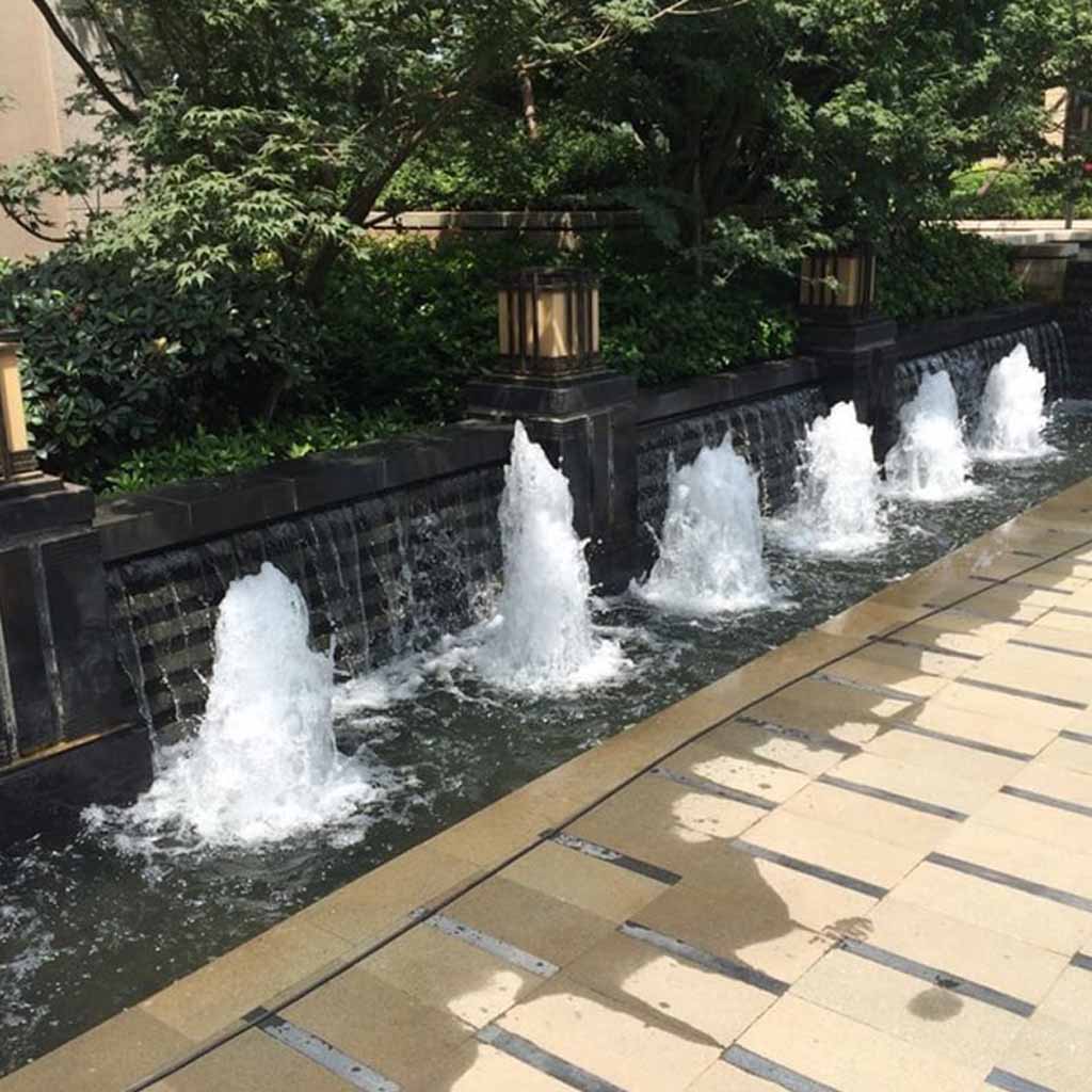 Hệ thống đài phun nước công cộng: Thường được lắp đặt theo cụm nhiều vòi để tạo nên một dải cây thông nước nhấp nhô đẹp mắt.