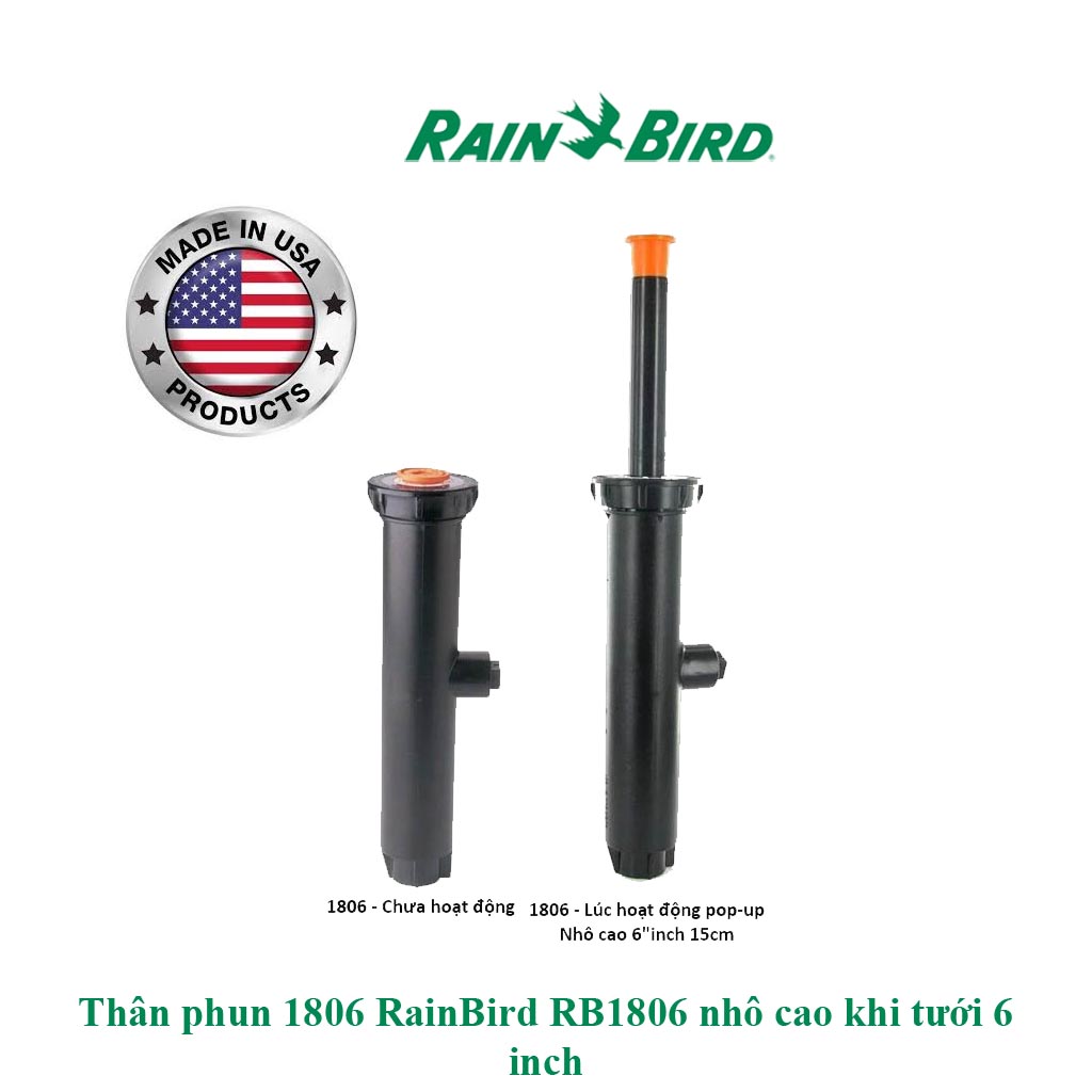 Thân phun 1806 RainBird RB1806 nhô cao khi tưới 6 inch