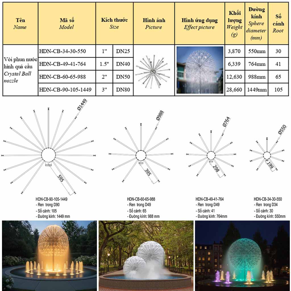 - Tên sản phẩm: Vòi phun nước hình quả cầu (Crystal Ball nozzle)