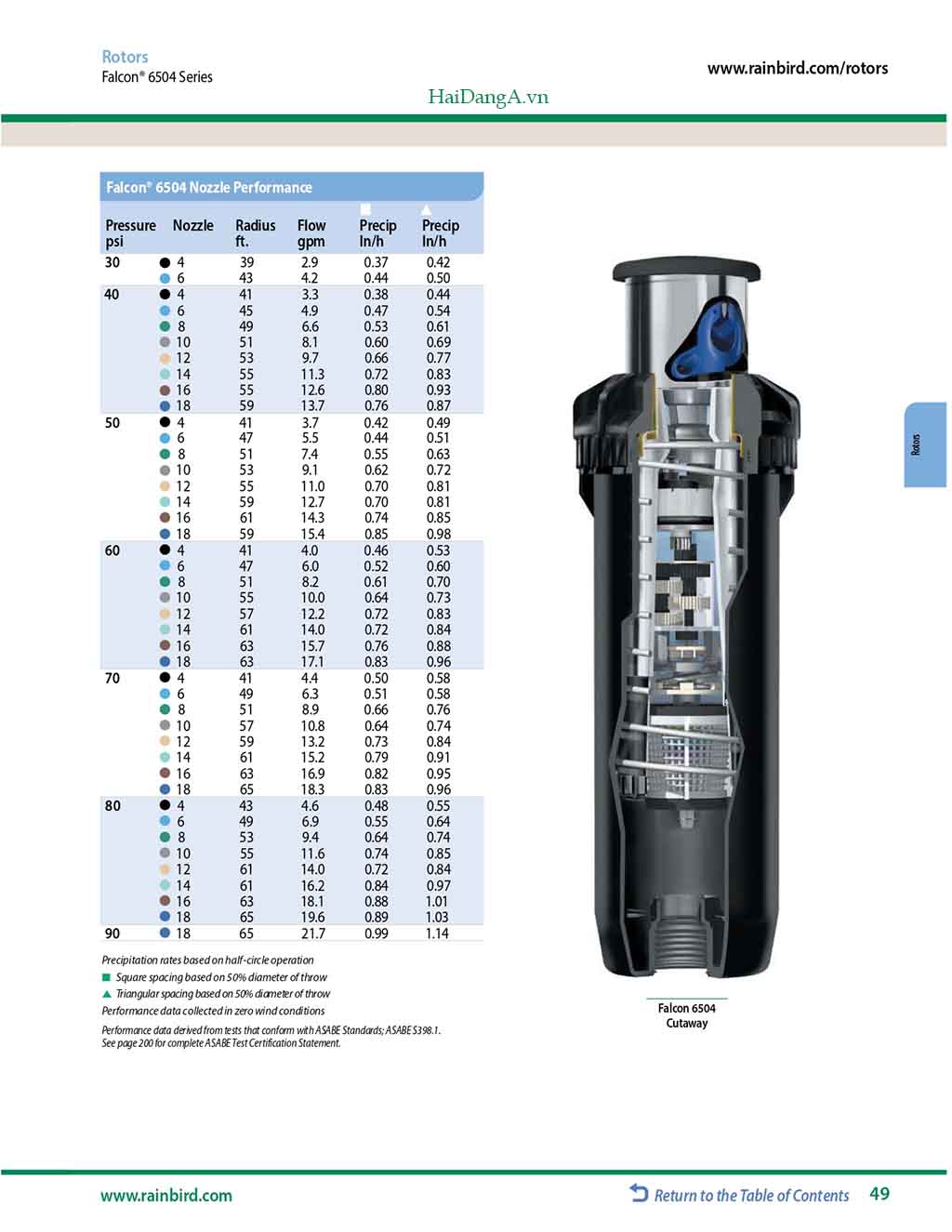 • Vòi phun rotor Falcon 6504 nhô cao khi tưới 4 inch, mã RB6504PC, là dòng sản phẩm chất lượng cao của Rainbird, thương hiệu tưới cảnh quan hàng đầu.